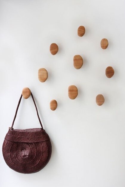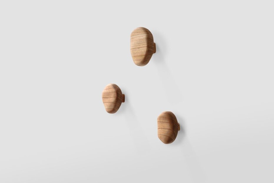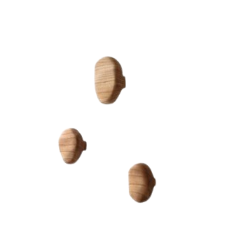O Trio de Penduradores Petra apresenta, como todas as peças da coleção, acabamento de aspecto muito natural com verniz totalmente fosco que busca valorizar a madeira como ela é, a delicadeza do seu desenho e veios naturais.